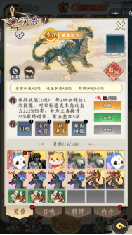 上阵灵宠可以给玩家本身加成大量的属性,还提供一个额外技能,极大的提高作战能力