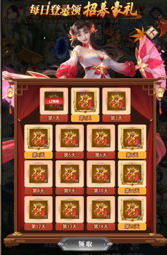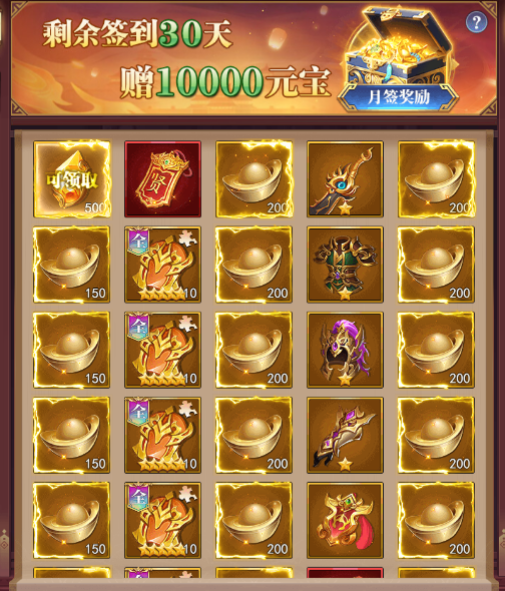 3、每日签到和每月签到领取大量元宝和英雄、招募令等豪礼