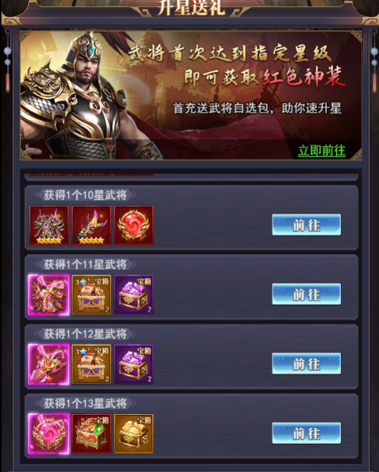 4、武将升星,免费领取红色神装和粉色时装等大量稀有道具豪礼