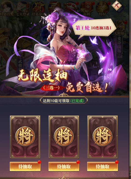 6、升级免费领取无限十连抽(可自选英雄)