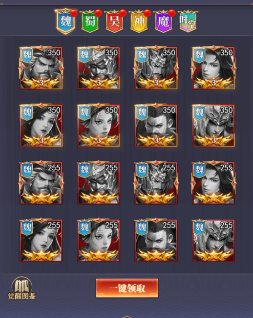 1、武将分为:三国武将、神魔武将、时空武将