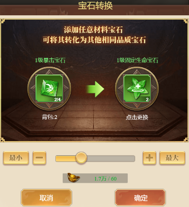 6. 可通过背包-宝石-宝石转换功能,将任意宝石转换成其他宝石类型。
