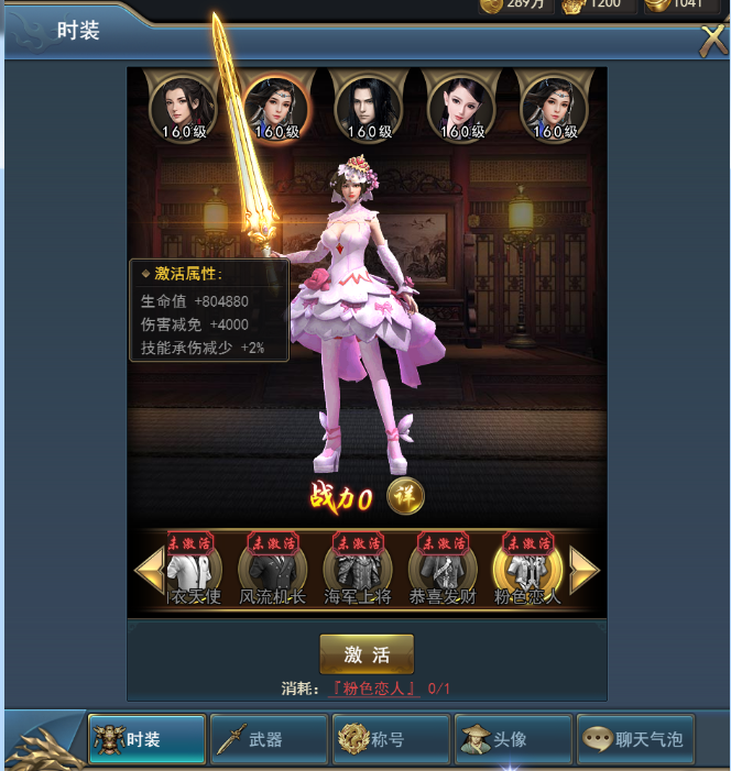 打开界面后玩家可预览时装的造型以及激活后附加的属性