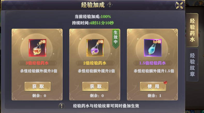 3.进入经验副本时一定要记得喝多倍经验药水,这个很关键