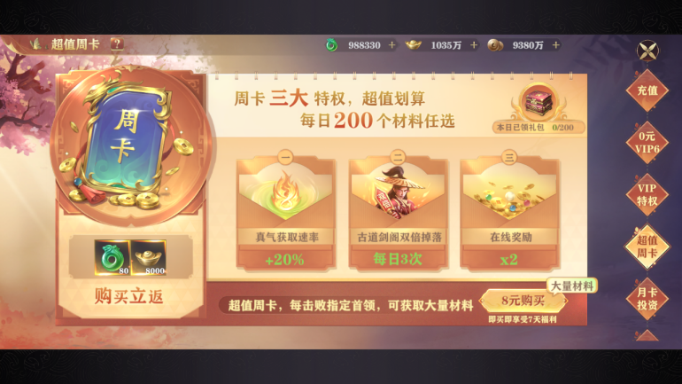 想长玩的,每日6元是必充的拿个倚天剑,前期战力膨胀得较快