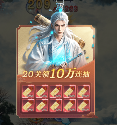 2、闯关送10w连抽,海量好礼拿到手软。