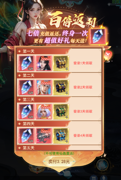 3、登录领好礼,百万元宝,珍贵幻化统统免费领。