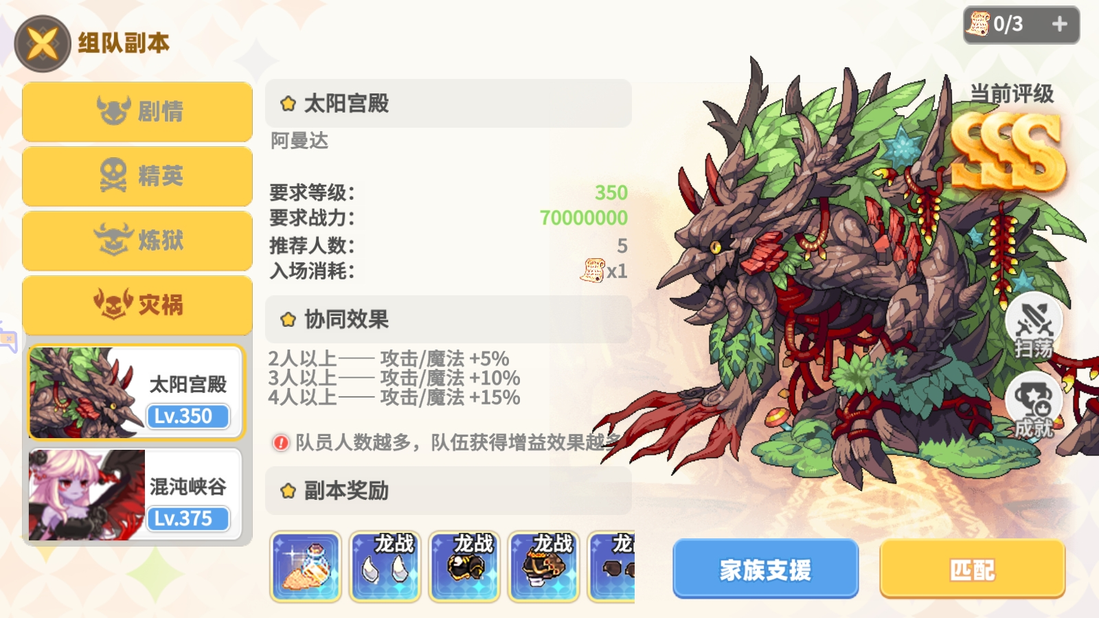 如果你现在的等级已经超过了325级且已经有了破坏套装,那么你的每天组队副本次数可以留着不用刷了,可以把组队副本的次数一直攒着。每天一共可以购买组队副本的次数为2+3+5=10次(组队副本内右上角+号2次,商城点券3次,以及每日礼包5次),这样每天可以存10次组队副本次数,再加上周卡和一些活动的兑换,一周差不多可以存100次组队副本次数了。